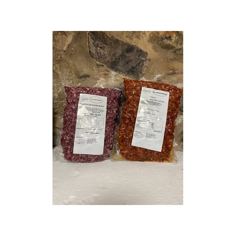 Sobres de taquitos de chorizo ibérico o salchichón ibérico.