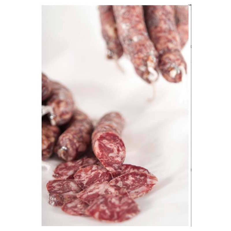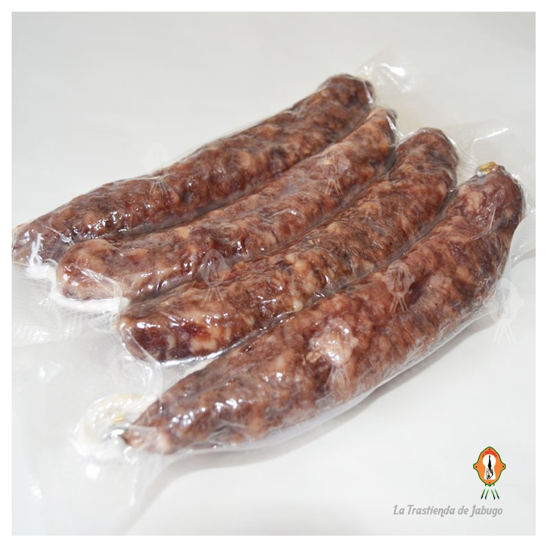 – Ingredientes: Magro y grasa de cerdo ibérico, dextrosa, disfosfatos, polifosfatos, especias, citrato de sodio, ascordato sódico, nitrato potásico, conservador E-252, sal, vino, ajo, nuez moscada y pimienta negra